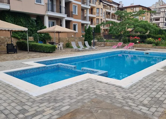 El Domus Extra Apartment Sveti Vlas, que ofrece una piscina privada y un jardín, se encuentra en el barrio Yurta, a aproximadamente 3 km del Parque de atracciones Sunny Beach. Este apartamento de 47 m^2 cuenta con Wi-Fi y un aparcamiento cerca.